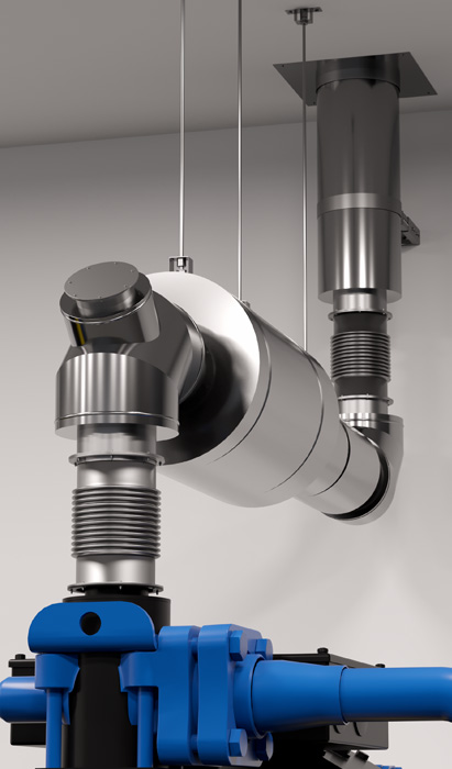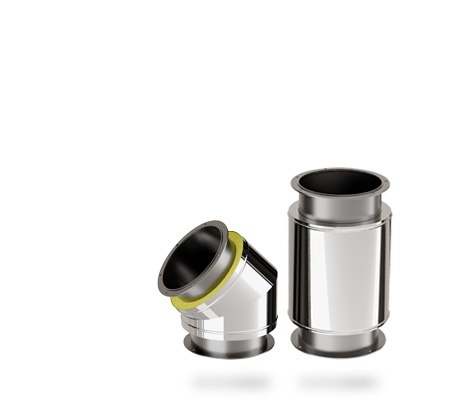 • Das System erfordert Ausdehnungskompensatoren bei horizontaler Montage / Verbindung Kessel-Kamin