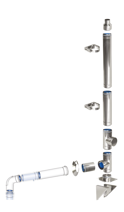 • Einsatzbereich: Gas, Heizöl • Durchmesser: Ø60/100, Ø80/125, Ø110/160 mm • Öl-und Gasfeuerstätten mit Wärmetauscher (bis max. 120°C) • Öl-und Gasbrennwertfeuerstätten (bis max. 120°C) • Blockheizkraftwerke (bis max. 5000 Pa / 120°C) • Raumluftunabhängiger Betrieb • CE-Zertifiziert