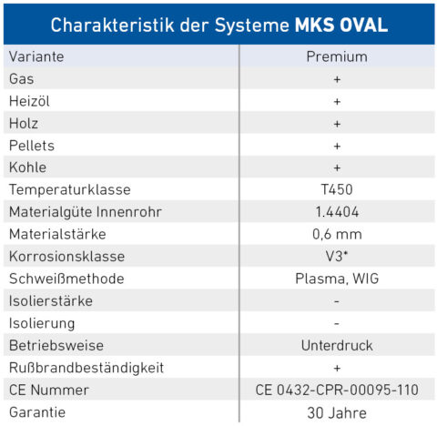 Einwandiges Oval Abgassystem zur Sanierung bestehender Hausschornsteine sowie als waagerechte Verbindungsleitung zwischen der Feuerstätte und dem Schornstein.