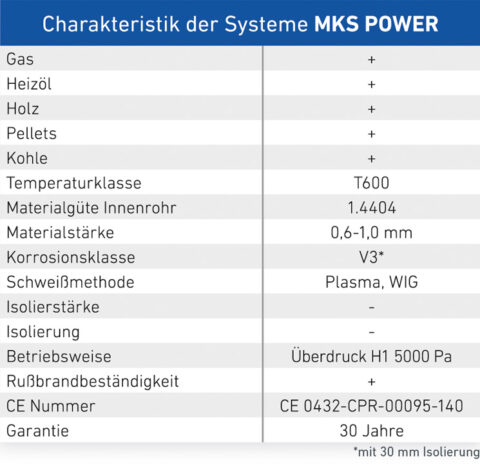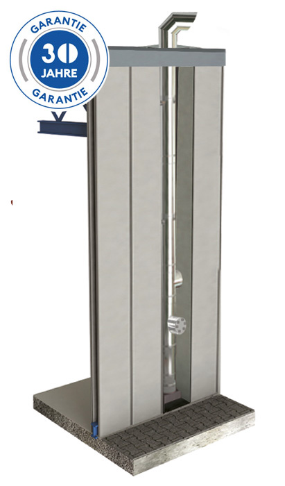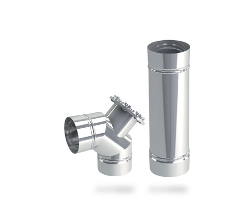 Einwandige, druckdichte Systemabgasanlage aus Edelstahl. Die innovative konische Verbin- dungstechnik des Innenrohres (metallische Flächendichtung) gewährleistet eine druckdichte Verbindung bis max. 5000 Pa (H1) bei einer maximalen Betriebstemperatur von 600°C. Das System ist geeignet für Montagen im bestehenden Schacht sowie als Verbindungsleitung.