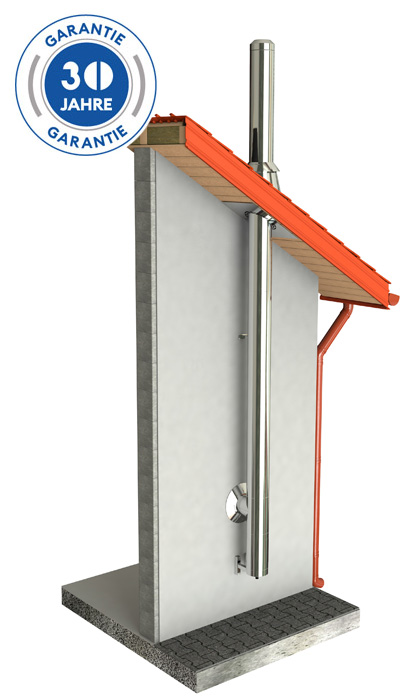 • Zur Montage als Außenwandschornstein, als Verbindungsleitung, für Industrielösungen (Tragmastanbindung)